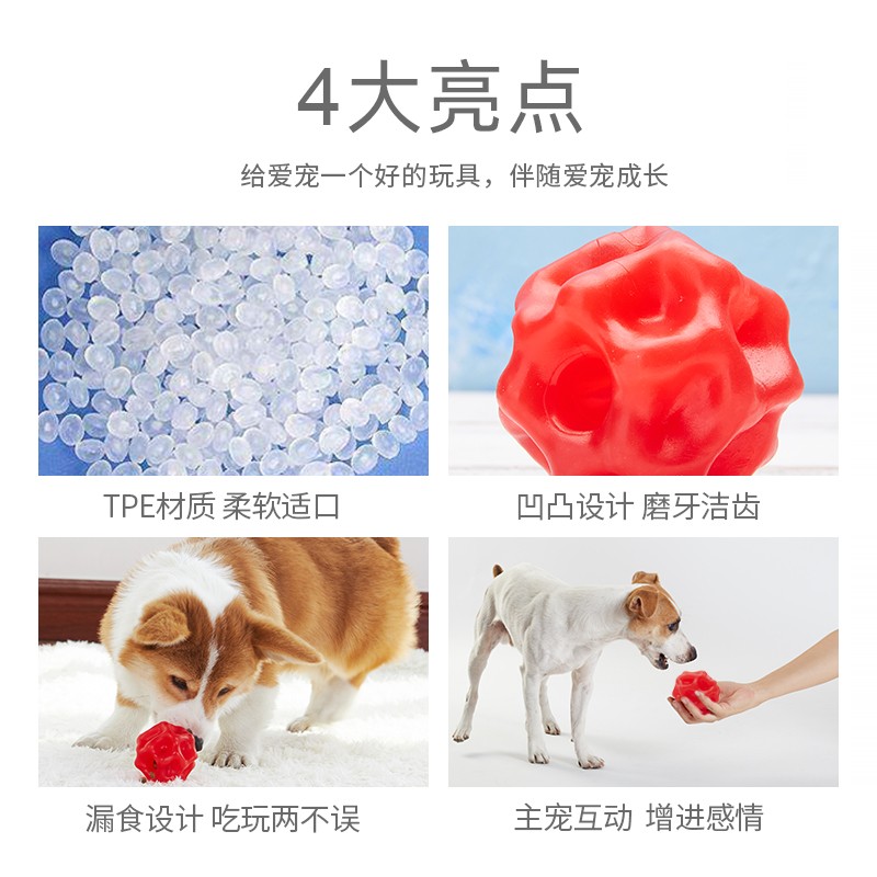 产品介绍:TPE材质,柔软适口,凹凸设计,磨牙洁齿,漏食设计,吃玩两不误。