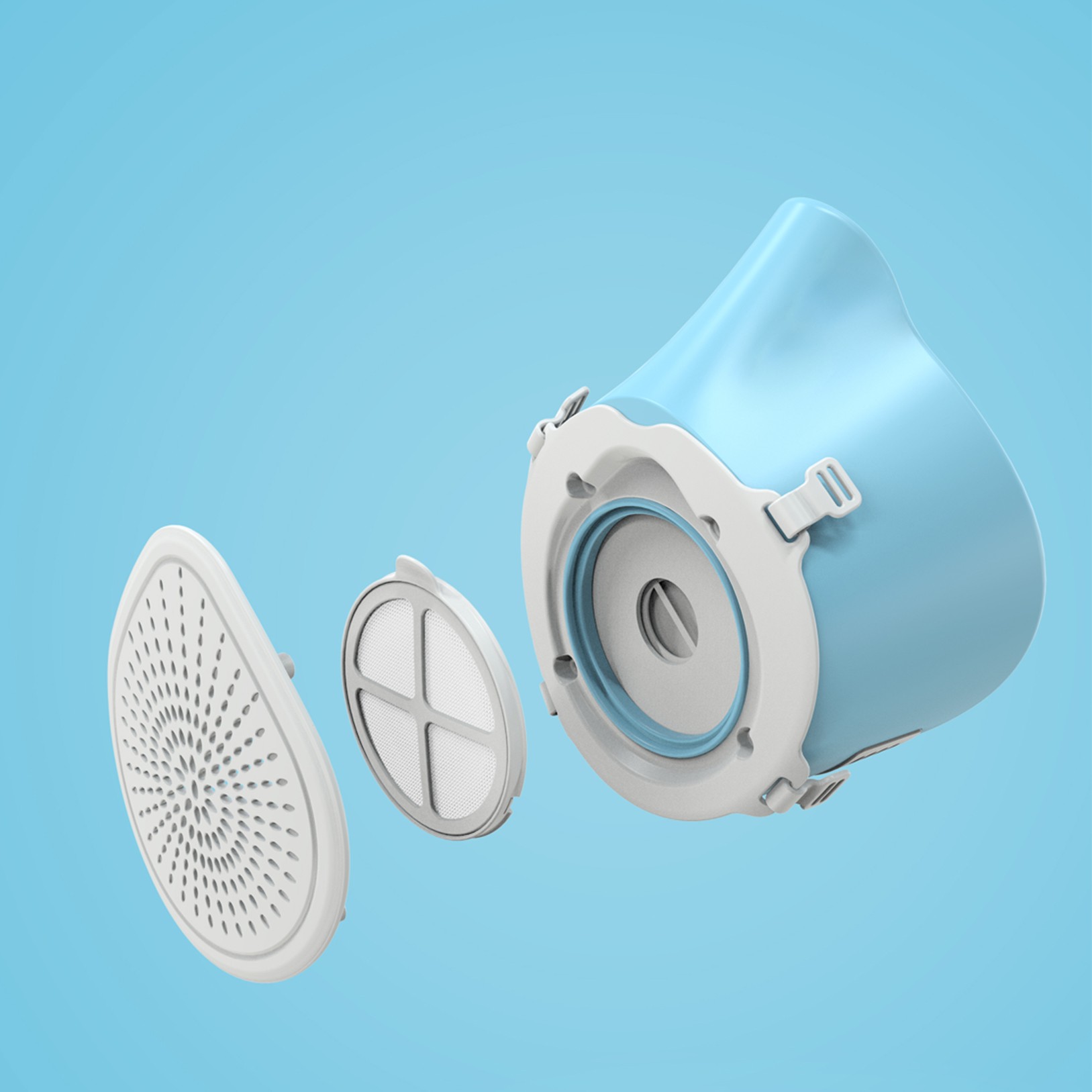 外观:表面光滑圆润配色:蓝色 PANTONE: 2905C 白色 PANTONE: White材质:ABS + 液态硅胶 尺寸:长110 mm x 宽91.5 mm x 高132mm供电:600mAh 锂电池额定电压:3.7V充电电压:5V静态电流:小于20uA续航时间:2h